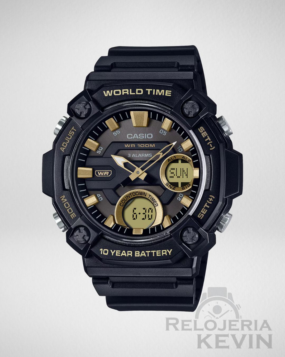 El Casio AEQ-120W-9AV es un reloj diseñado para aquellos que buscan durabilidad, funcionalidad y un estilo deportivo y moderno. Su combinación de display analógico y digital ofrece una lectura clara de la hora, complementada con una amplia gama de funciones avanzadas.