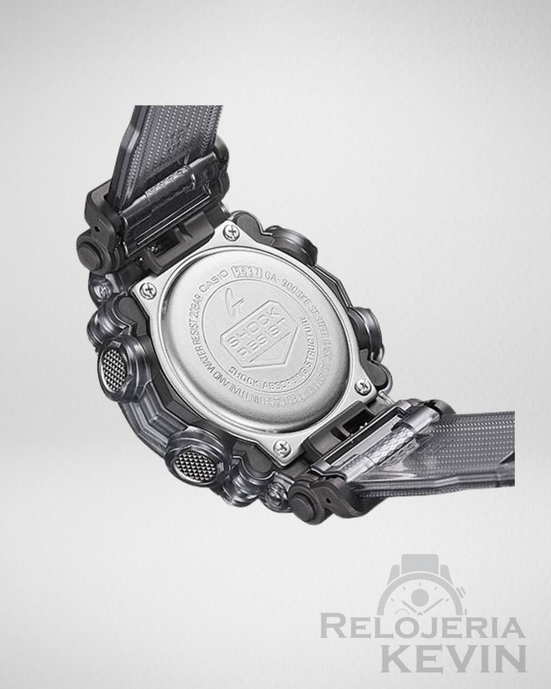 El Casio GA-900SKE-8A es un modelo de la serie G-SHOCK, diseñado para ofrecer máxima resistencia y un estilo moderno con su caja semitransparente ahumada y detalles en negro. Este reloj combina un diseño industrial con un rendimiento inigualable, perfecto para quienes necesitan un accesorio confiable y con personalidad.