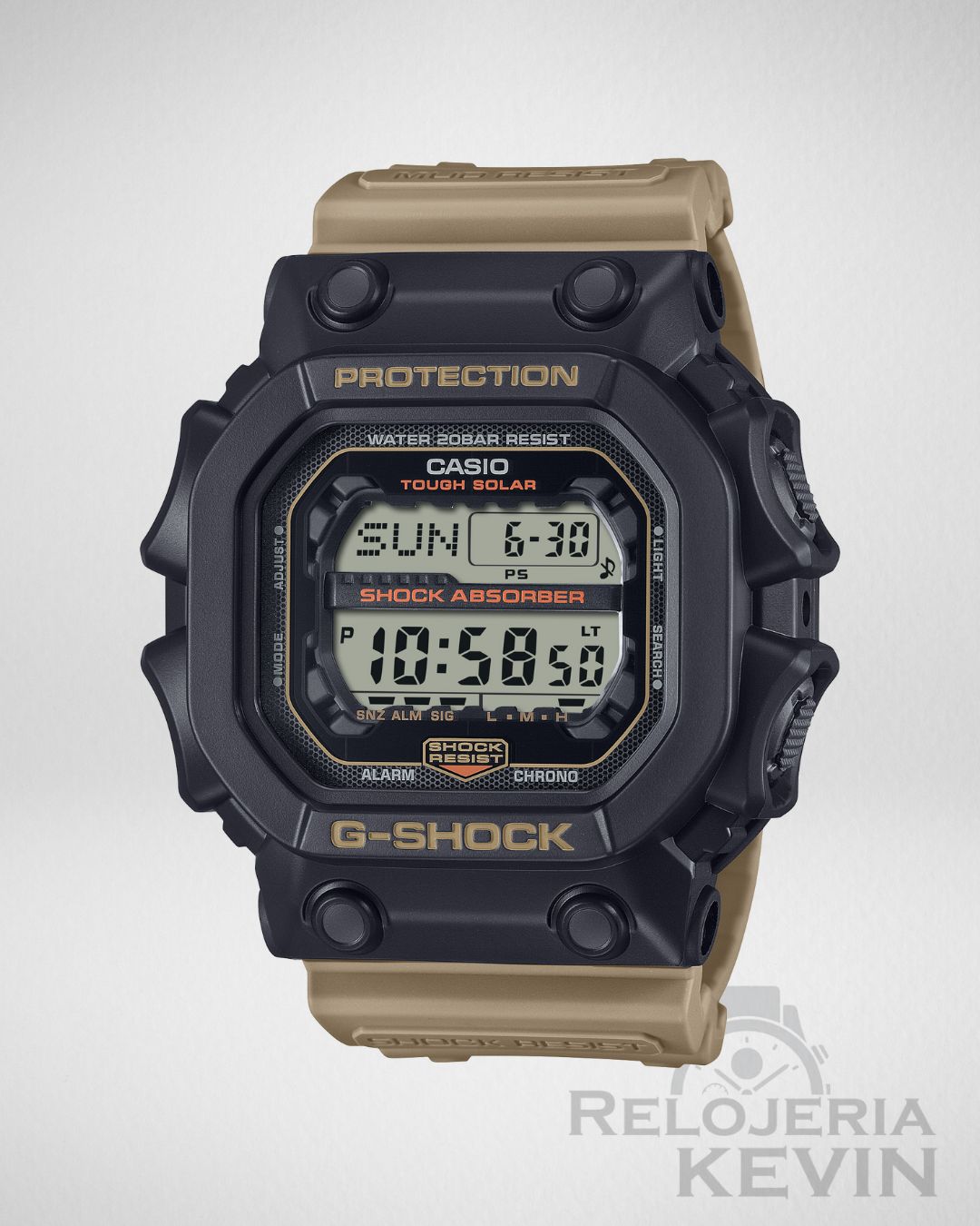 El Casio GX-56TU-1A5 es parte de la legendaria serie G-SHOCK KING OF G, diseñada para quienes necesitan máxima durabilidad y resistencia en cualquier entorno. Su caja de gran tamaño en negro mate con detalles en marrón militar le da un aspecto imponente y táctico, ideal para actividades extremas y un estilo de vida aventurero.