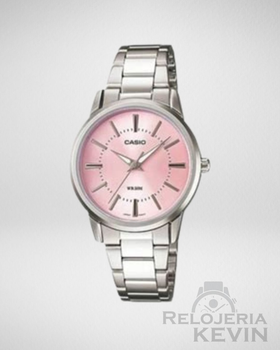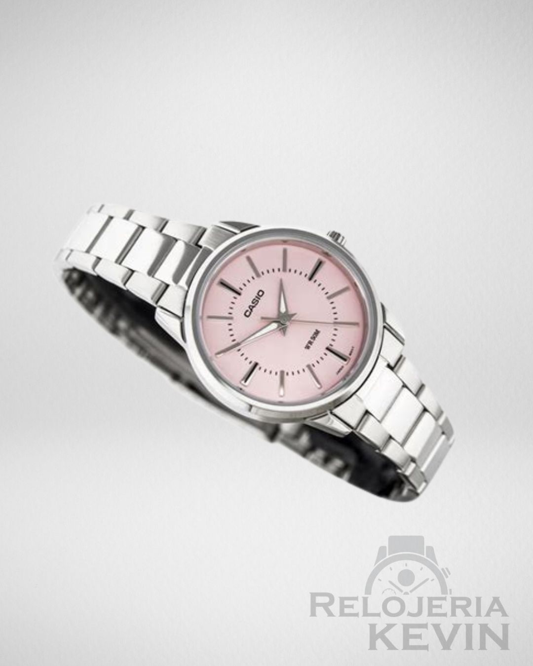 El Casio LTP-1303D-4AV es un reloj análogo para dama que combina elegancia y funcionalidad en un diseño clásico y sofisticado. Su esfera rosa con detalles plateados y correa de acero inoxidable lo convierten en el accesorio perfecto para cualquier ocasión.