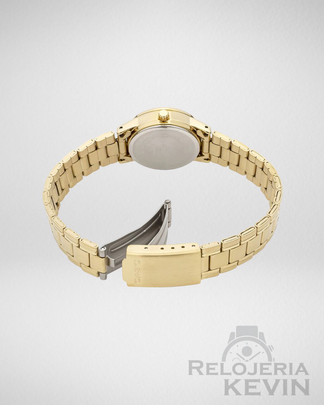 El Casio LTP-V001G-9B es un reloj análogo para dama que combina elegancia y funcionalidad en un diseño clásico y sofisticado. Su esfera dorada con números arábigos y correa de acero inoxidable dorado lo convierten en el accesorio perfecto para cualquier ocasión.