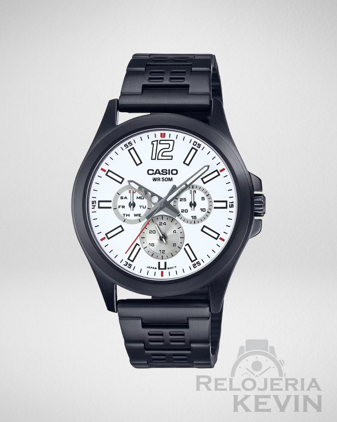 Incorpora tres subesferas funcionales que muestran el día de la semana, la fecha y un formato de 24 horas, lo que facilita el acceso a información clave con solo un vistazo. Su movimiento de cuarzo japonés ofrece una precisión impecable, asegurando que siempre estés a tiempo en cualquier situación.