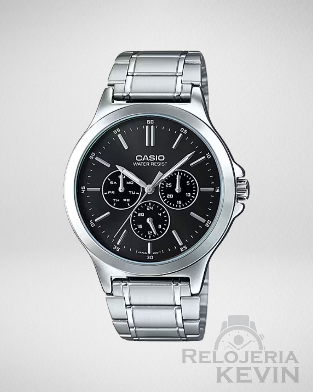 Con una resistencia al agua de 50 metros, el Casio MTP-V300D-1A2 está diseñado para soportar el uso diario sin preocupaciones ante salpicaduras o lluvia ligera.