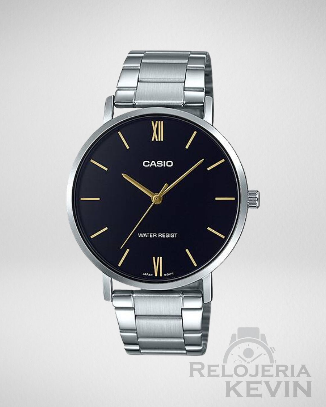 El Casio MTP-VT01D-1B combina minimalismo y elegancia en un diseño sofisticado. Con su esfera negra de acabado limpio, detalles plateados y una correa de acero inoxidable, es el reloj ideal para quienes buscan un estilo moderno, versátil y funcional para cualquier ocasión.