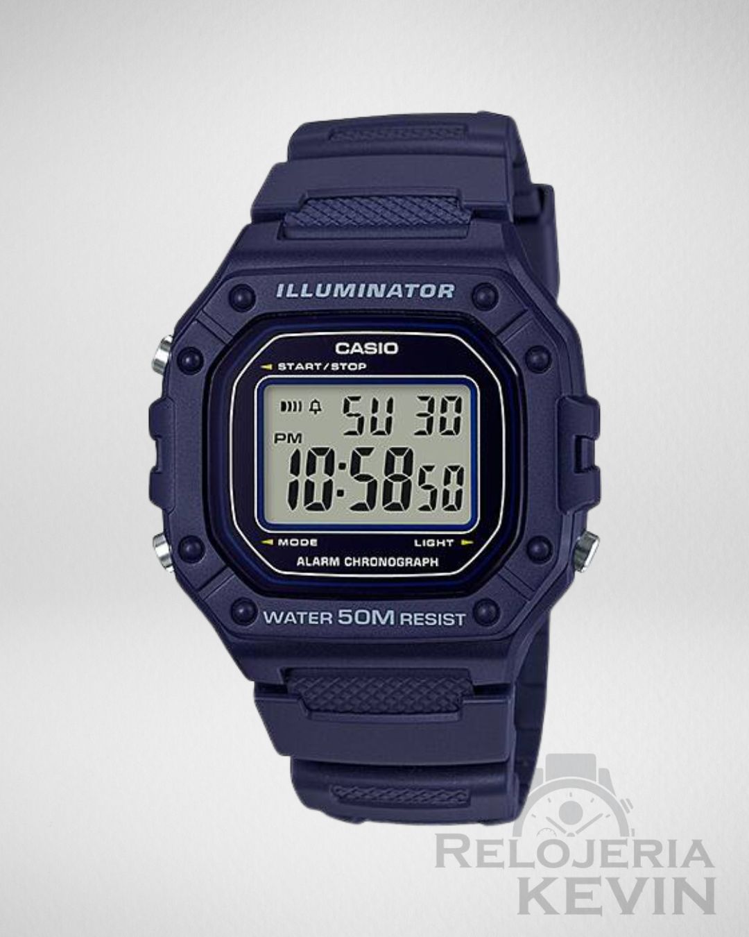 El Casio W-218H-2AV es un reloj digital versátil y duradero, diseñado para quienes buscan un accesorio práctico y resistente. Su diseño en azul con detalles en negro le da un toque deportivo y moderno, combinando estilo con funcionalidad.