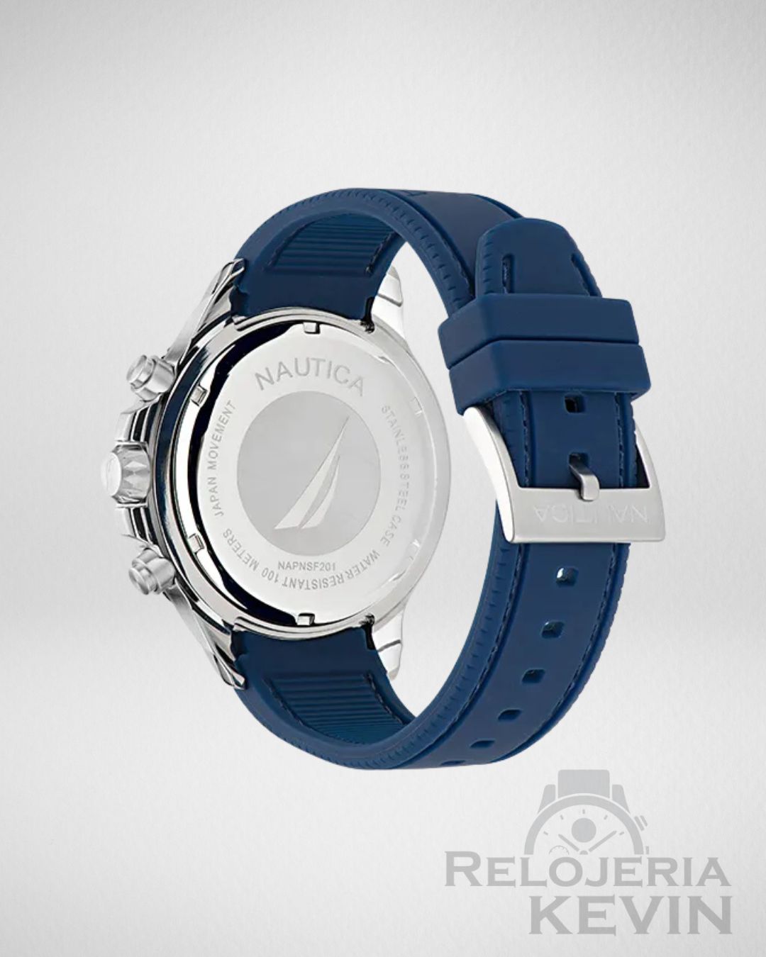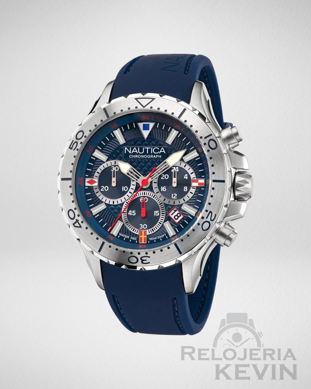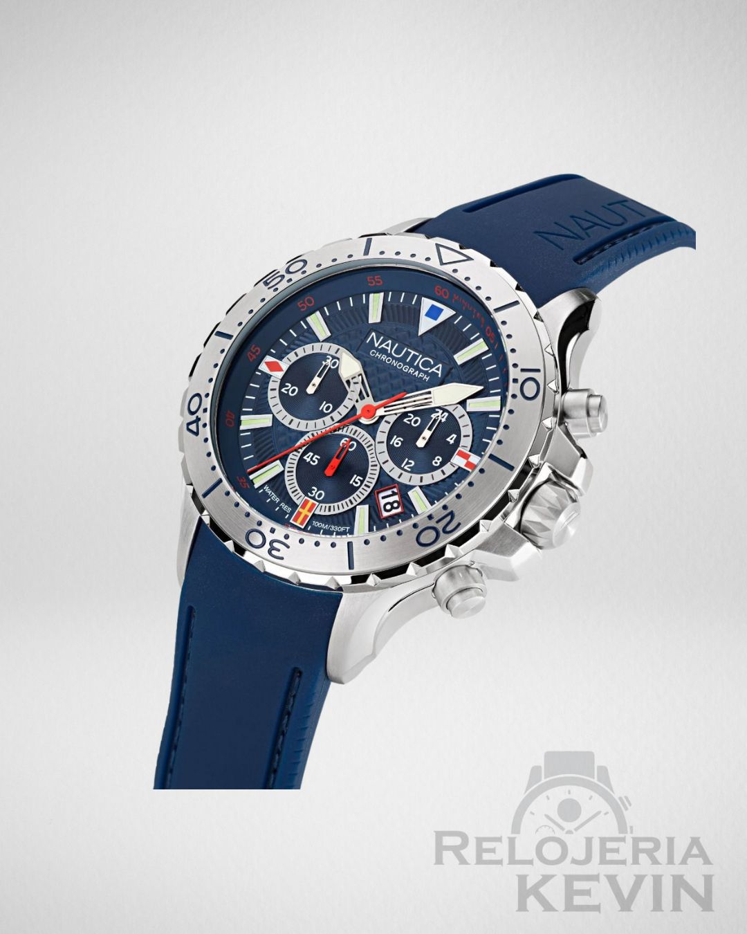 El Nautica NAPNSF201, de la colección NST, es un reloj cronógrafo para hombre que combina un diseño deportivo con funcionalidades avanzadas.